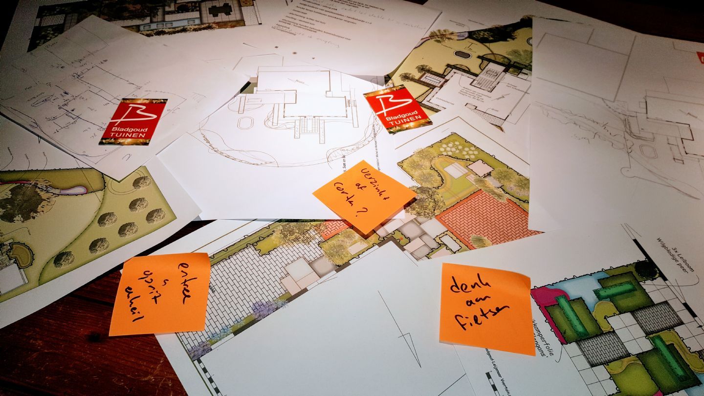 Nu je een tijdje naar het tuinontwerp hebt gekeken en nu er een kostenschatting/offerte is gekomen, roept dat ook weer nieuwe vragen op. Dat heeft even tijd en aandacht nodig. We maken een belafspraak om dat allemaal nog eens door te nemen. Daarna kan ik een definitief tuinontwerp maken en alle materialen erbij zoeken die nodig zijn.
